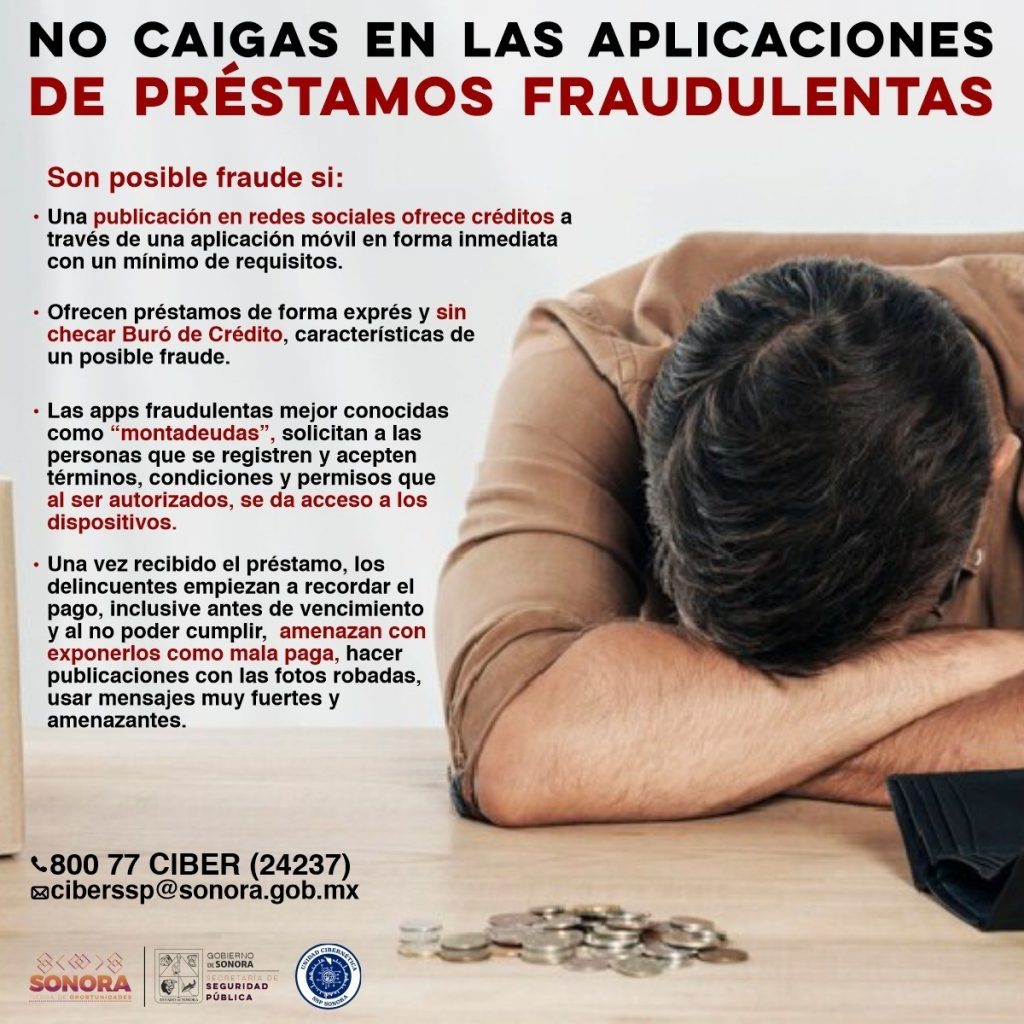 Hermosillo, Sonora.- Si una publicación en redes sociales ofrece créditos a través de una aplicación móvil en forma inmediata con un mínimo de requisitos, podría tratarse de un fraude advirtió, la Unidad Cibernética de la Secretaría de Seguridad Pública (SSP) de Sonora.