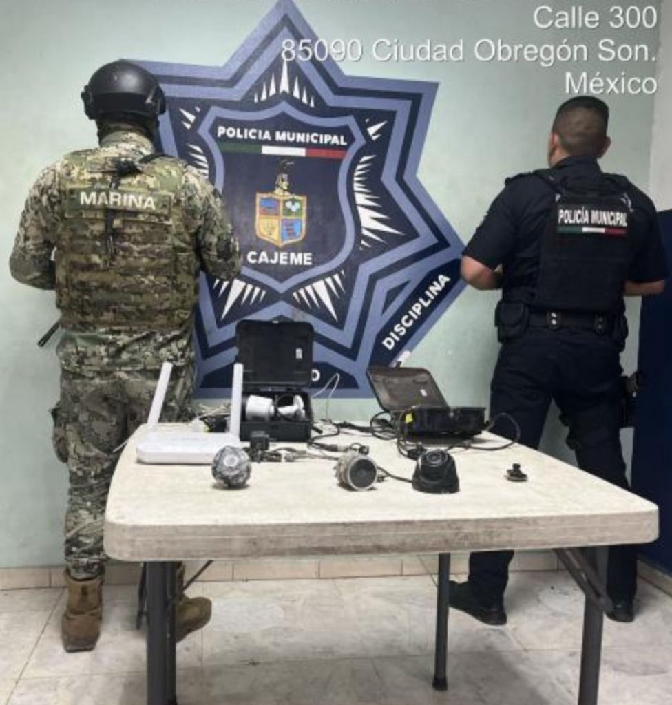 Cd. Obregón, Sonora.- Elementos de la Policía Municipal de Cajeme, en coordinación con personal de la Secretaría de Marina, aseguraron ocho cámaras de videovigilancia que se encontraban instaladas de manera irregular en postes de alumbrado público en distintos puntos de la colonia Urbi Villa del Rey.