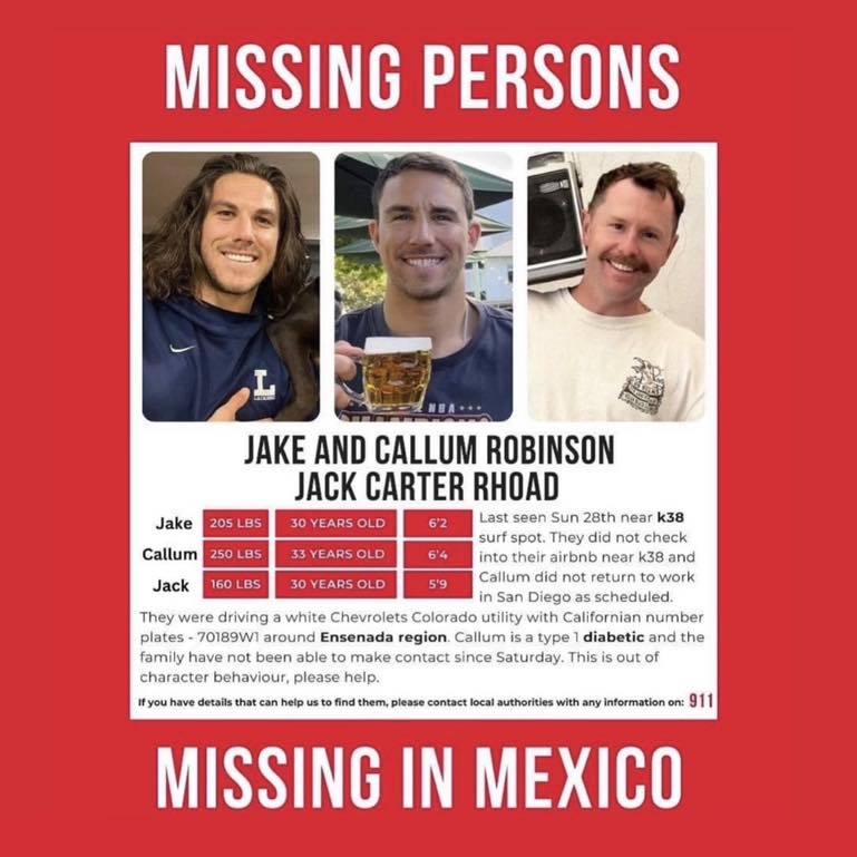 Jake y Callum viajaron con un amigo al estado fronterizo para pasar un fin de semana practicando surf en Rosarito. Sin embargo, en un momento, los hermanos australianos desaparecieron, dejando como último rastro ser vistos en Santo Tomás, a más de 100 kilómetros al sur de Rosarito, en Baja California.