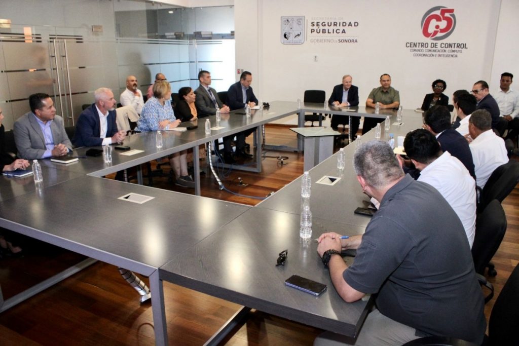 El encuentro binacional se llevó a cabo en las instalaciones del Centro de Control, Comando, Comunicación, Cómputo, Coordinación e Inteligencia (C5i), donde se presentó un panorama del trabajo que realiza la SSP en territorio sonorense.