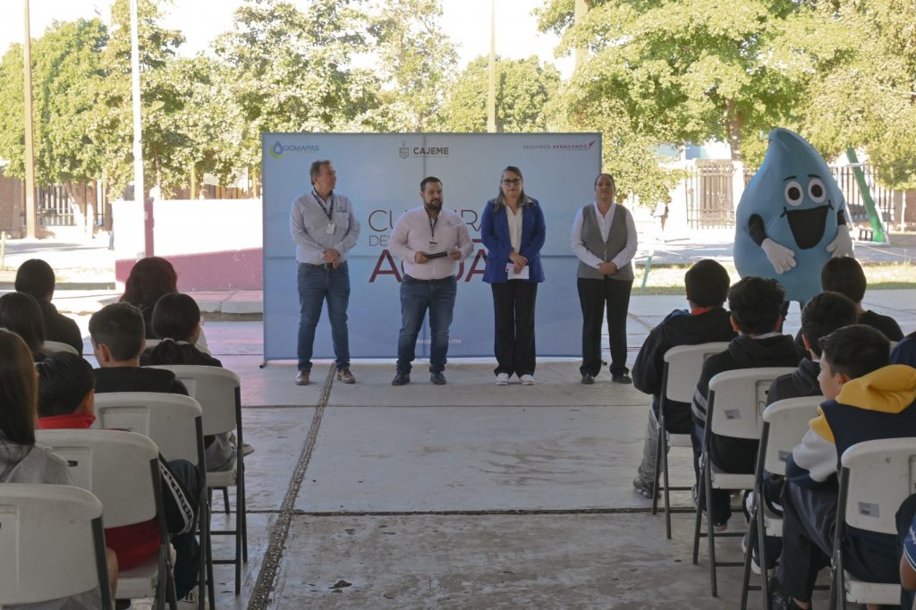 La directora de la Secundaria Estatal número 11, Nancy Palomares en la colonia Primero de Mayo, recibió a Fernando Félix, director de programas sociales del organismo y funcionarios que le acompañaron para compartir pláticas y realizar talleres con los estudiantes de la institución en relación a las condiciones de sequía y el manejo del agua de forma responsable.