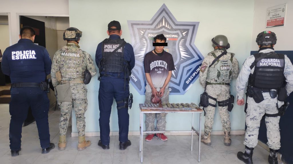 Cd. Obregón, Sonora.- Como parte de los barridos de vigilancia y prevención del delito en Cajeme, la Secretaría de Seguridad Pública Municipal en coordinación con Secretaría de Marina, SEDENA, Guardia Nacional y Policía Estatal, lograron la captura de un hombre por el presunto delito contra la salud.