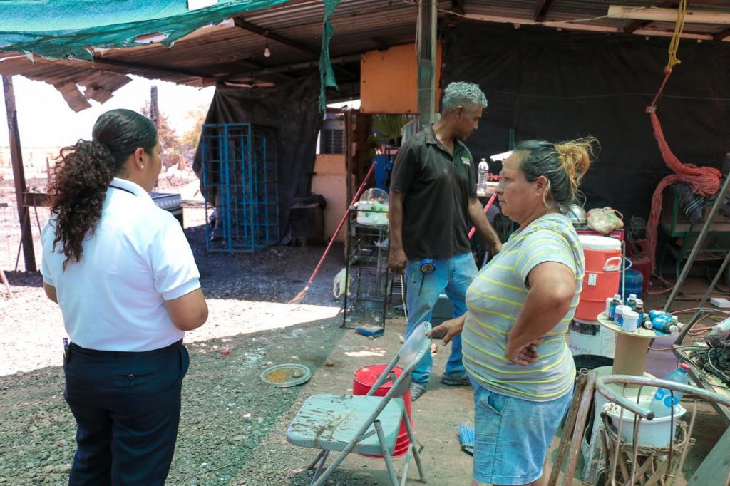 Encabezados por la Presidenta  de voluntariado de DIF Cajeme, licenciada Mairdel Rocío Cervantes Soto, y programas Preventivos brindaron apoyo con materiales de construcción a las familias afectadas por incendio, donando un total de 86 tarimas, además de alimentos, cobijas, materiales de limpieza, pañales y ropa.