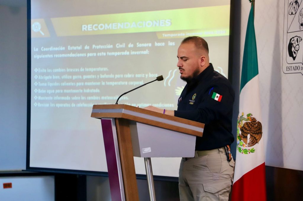 Armando Castañeda Sánchez, coordinador estatal de Protección Civil Sonora, informó de las acciones que se realizan para mantener informada a la población, así como de la campaña preventiva que se desarrolla ante la temporada invernal.