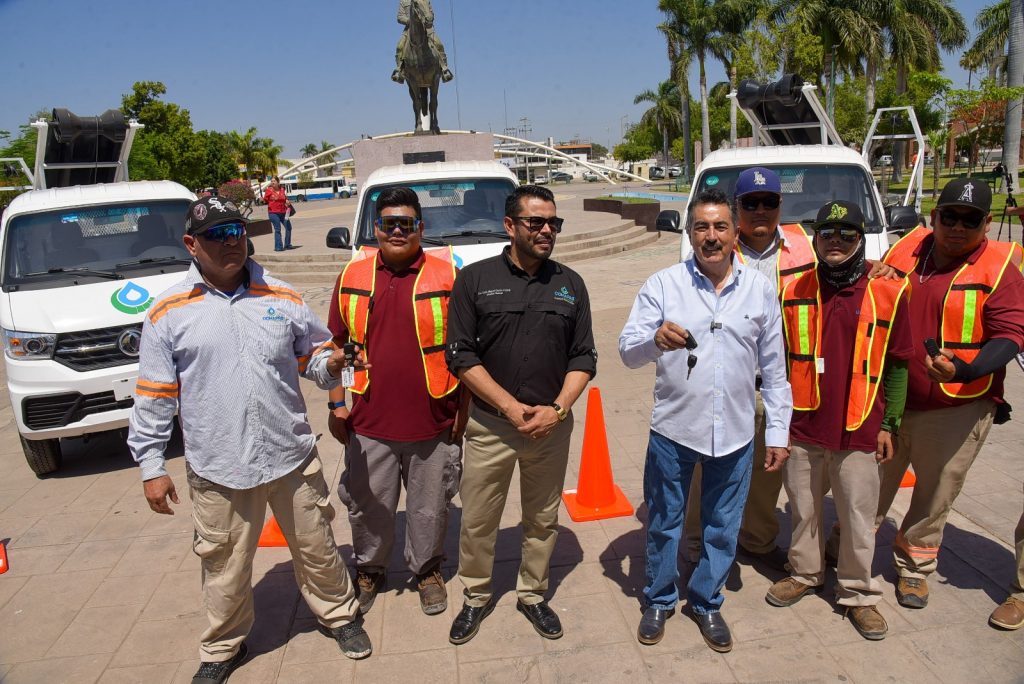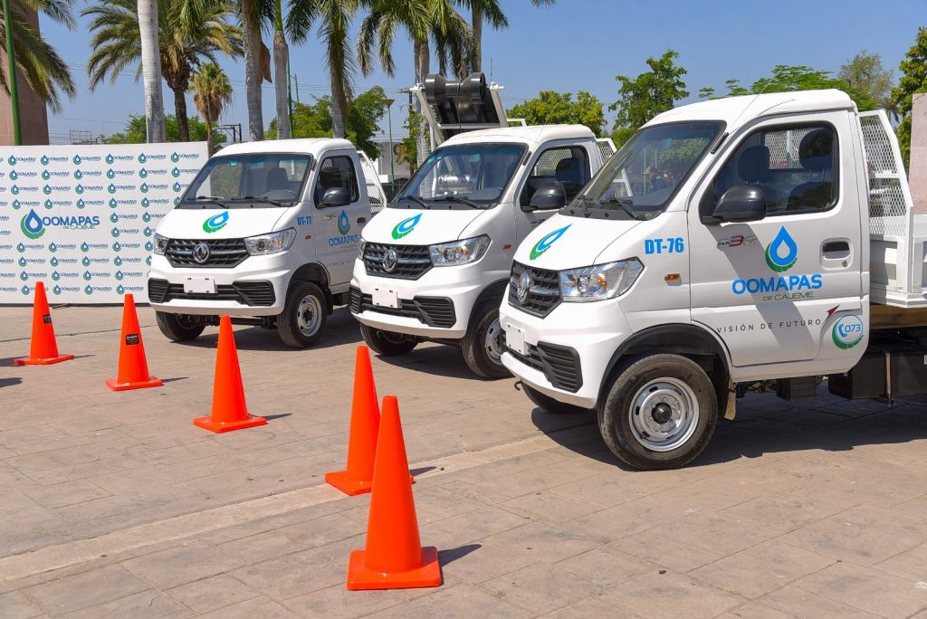 Cd. Obregón, Sonora.- El Alcalde Javier Lamarque Cano realizó la entrega de llaves de tres unidades con una capacidad de 2 toneladas cada una, destinadas al Organismo Operador Municipal de Agua Potable, Alcantarillado y Saneamiento de Cajeme (OOMAPASC). Además, se entregaron dos equipos de malacates, los cuales serán utilizados para atender problemas de drenaje en la Ciudad.