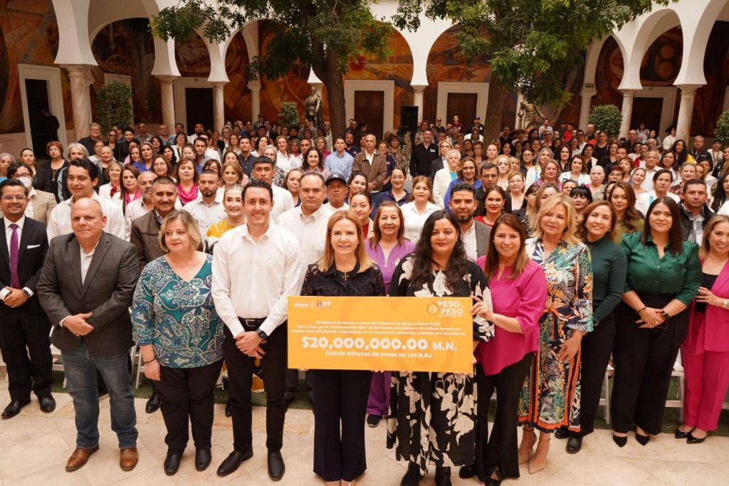 Hermosillo, Sonora.- El Gobierno de Sonora, a través del Sistema para el Desarrollo Integral de la Familia (DIF Sonora), realizó la entrega de 20 millones de pesos en apoyos del programa Peso a Peso por la Transformación, a quienes trabajan a favor de las personas en situación de vulnerabilidad que viven o transitan por Sonora.