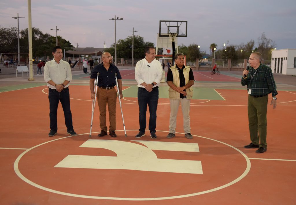 Hermosillo, Sonora.- “Hoy estamos aquí para corresponder con hechos, con resultados los compromisos con esta gran comunidad”, destacó Antonio Astiazarán al entregar mejoras a canchas de basquetbol de la Unidad Deportiva de Bahía de Kino.