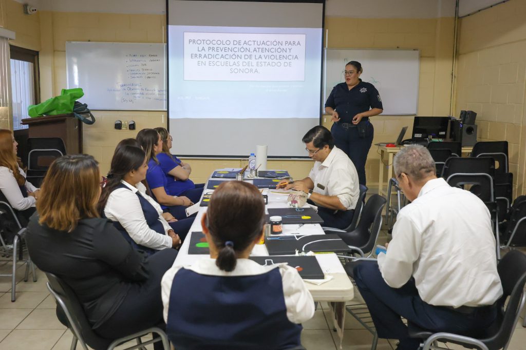 La capacitación fue impartida por la oficial Danna Vianey Vega Higareda, integrante del programa D.A.R.E. de la Policía Municipal de Cajeme, misma que estuvo enfocada en el protocolo de actuación para la prevención, atención y erradicación de la violencia en escuelas del Estado de Sonora, instrumento clave para garantizar entornos escolares seguros.