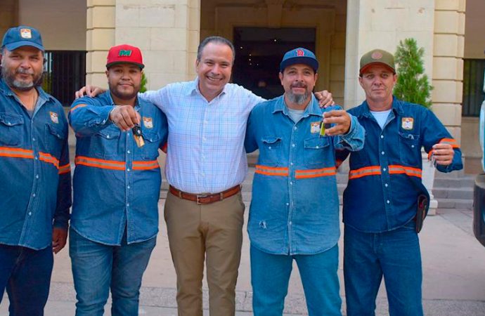 El Presidente Municipal, acompañado por Sergio Pavlovich, director de Servicios Públicos, entregó las llaves de las unidades que representan una inversión superior a los 14 millones de pesos y dignifican el trabajo diario de empleados de la dependencia que hacen posible este beneficio a la ciudadanía.
