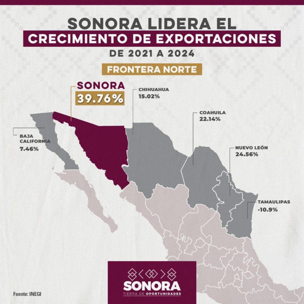 “El Estado de Sonora destaca entre las entidades fronterizas con el mayor crecimiento exportador, fruto del trabajo de promoción que hemos hecho para posicionar al Estado como una plataforma de desarrollo económico para las grandes industrias”, expresó.