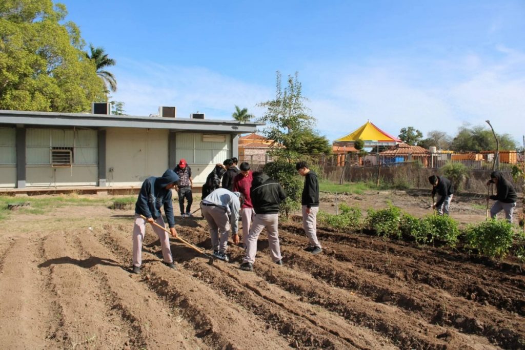 En coordinación con la Fundación Ambiental del Valle del Yaqui A.C., estudiantes del plantel forman parte, por tercer año, de este proyecto transversal a través del cual han sembrado y cosechado calabaza, chile serrano y verde, betabel, zanahoria, tomate, cebolla cambray, maíz criollo y rojo, ajonjolí, rábanos, repollo, coliflor, lechuga y okra.