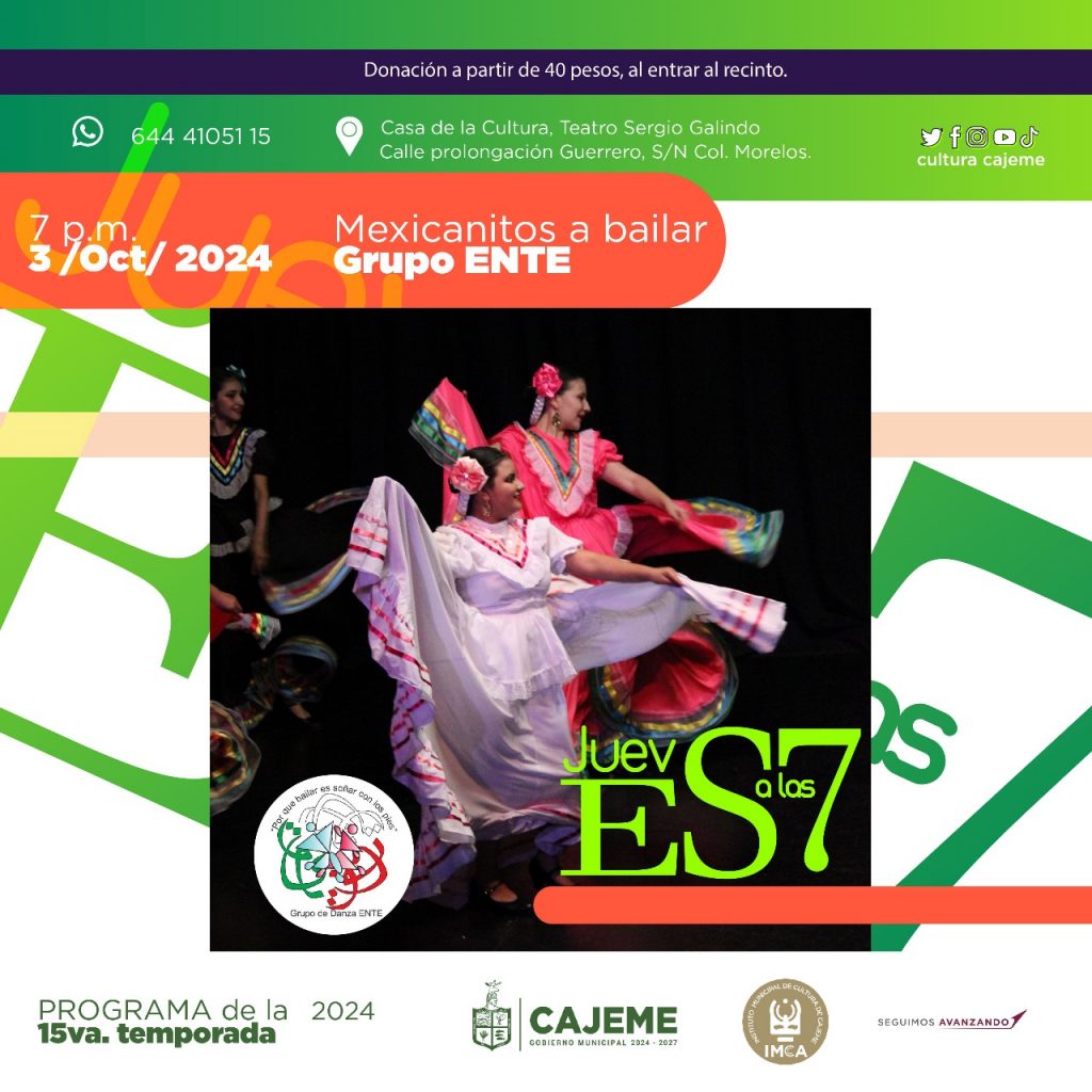 Cd. Obregón, Sonora.- Para promover la Casa de la Cultura, en particular al teatro Sergio Galindo Sánchez, como espacio que aglutina y acciona las diferentes propuestas artísticas de la localidad, el Gobierno Municipal, a través del Instituto Municipal de Cultura de Cajeme (IMCCA), invita a la Décimo Quinta temporada del programa cultural «Jueves a las 7».