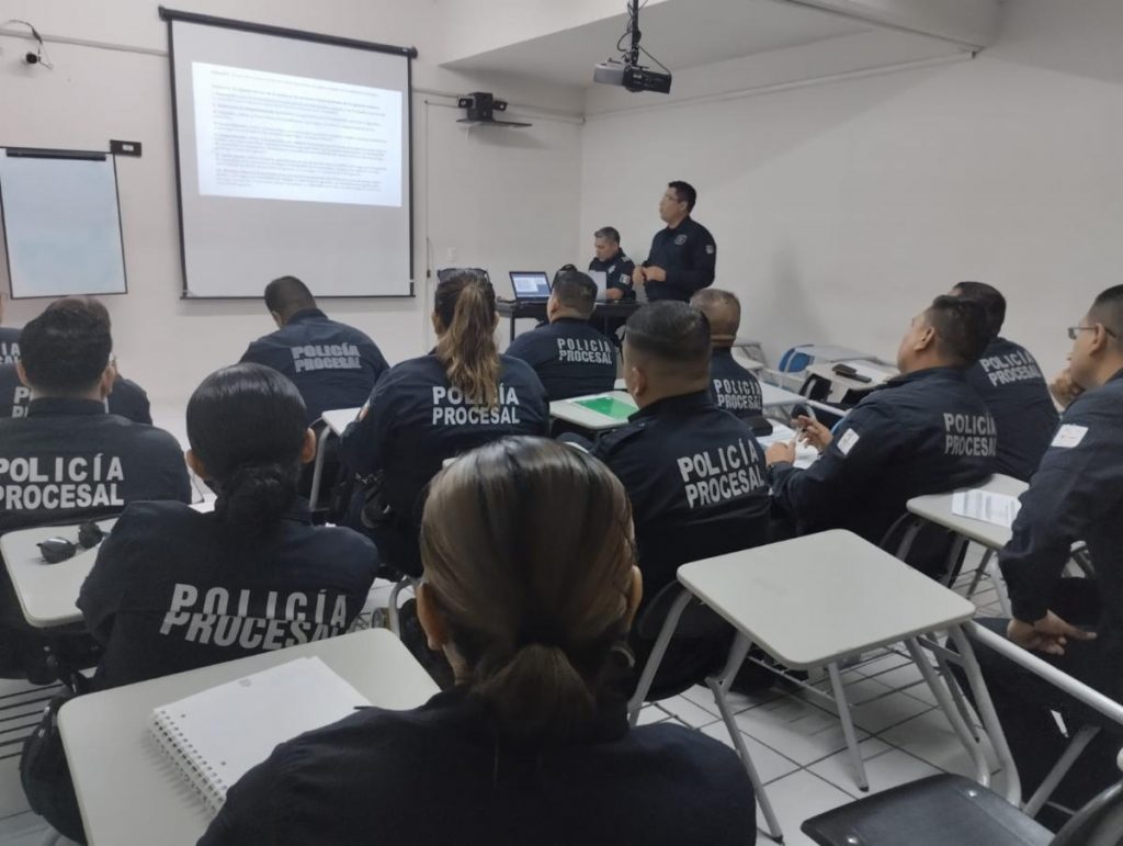 Mujeres y hombres que brindan servicio como Policías Procesales fortalecen sus destrezas en un entrenamiento teórico y práctico, con el objetivo de estar preparados para salvaguardar la seguridad de las y los sonorenses.