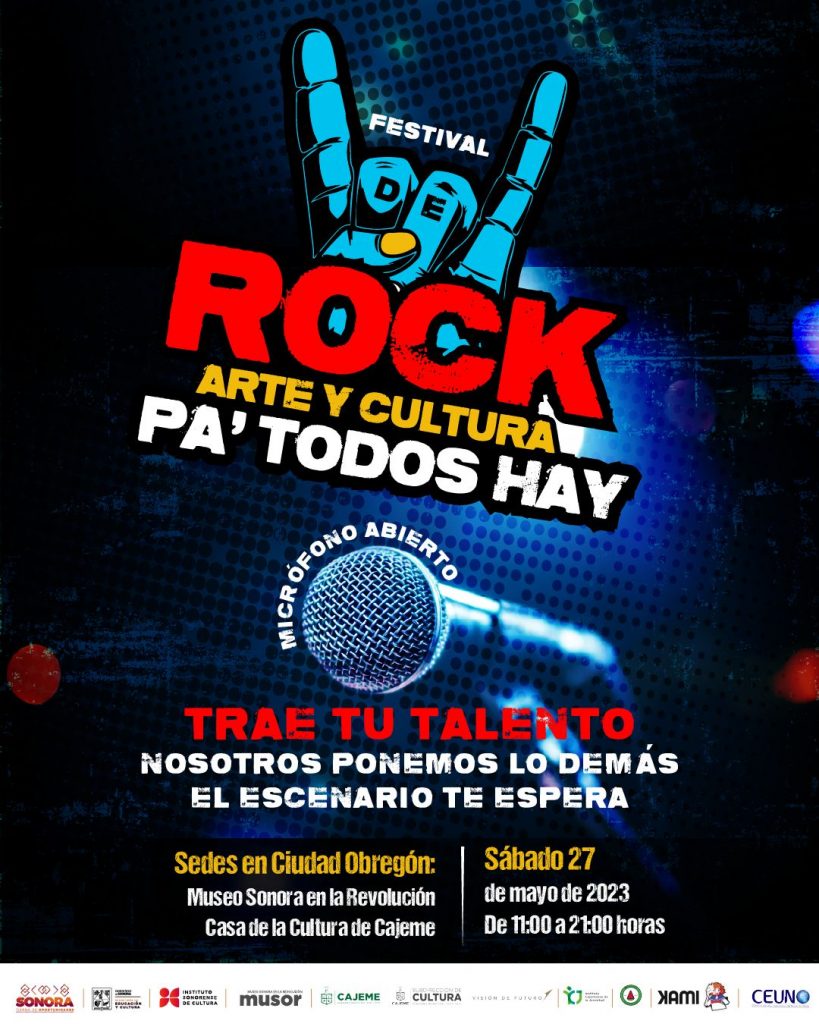 Cd. Obregón, Sonora.- Para promover el arte y cultura en Cajeme, el Ayuntamiento a través del Instituto Cajemense de la Juventud (CJ), se anunció el Festival de Rock, Arte y Cultura “Pa’ Todos Hay”.