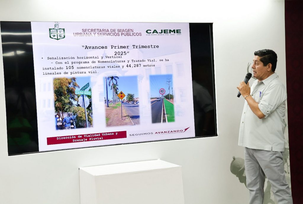 En cuanto al mejoramiento de calles, se han atendido 1 millón 334 mil 300 metros cuadrados de caminos de terracería, retirado 29 mil 190 metros cúbicos de escombro, realizado 44 mil 945 metros cuadrados de bacheo en 49 colonias, además de instalar 105 nomenclaturas viales y aplicar 44 mil 287 metros lineales de pintura vial, también se han corregido 202 semáforos y reparado 32 parrillas de drenaje pluvial, junto con la limpieza de 118 bocas de tormenta.