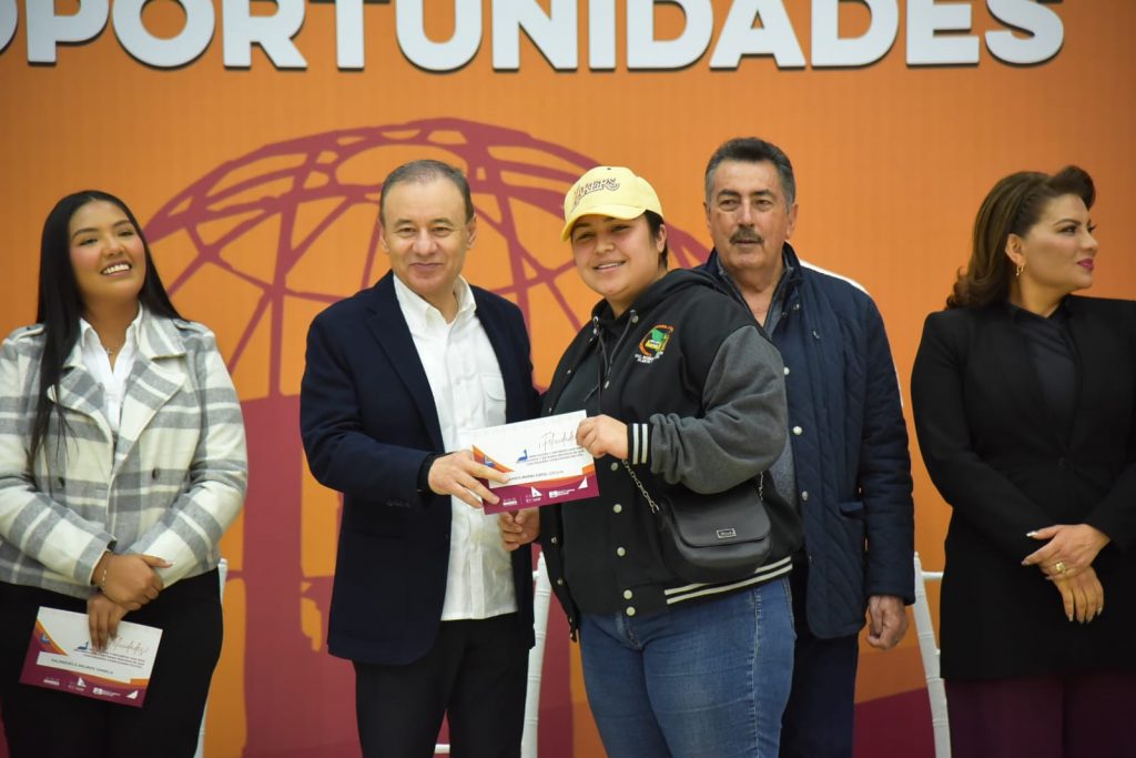 Cd. Obregón, Sonora.- Con el objetivo de contribuir a que las y los jóvenes cajemenses tengan la oportunidad de continuar sus estudios de nivel superior, donde la falta de apoyo económico no sea una limitante, el Presidente Municipal, Javier Lamarque acompañó al Gobernador Alfonso Durazo en la entrega de más de 4 mil 400 becas “Sonora de Oportunidades” a estudiantes de nueve universidades públicas de Cajeme, mismas que van desde los 5 mil hasta los 10 mil pesos, dependiendo del grado académico, necesidades e institución en la que cursen sus carreras profesionales.