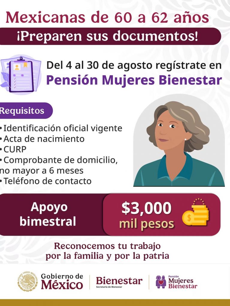 Cabe indicar que este 2025, la Pensión Mujeres Bienestar entrega a cada participante un apoyo económico de 3 mil pesos bimestrales, mismo que se puede cobrar en las ventanillas o cajeros automáticos del Banco Bienestar.