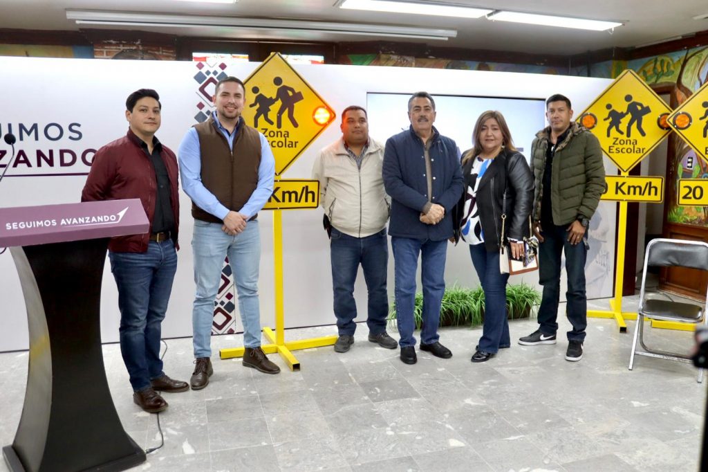 Durante el arranque de este programa, el Presidente Municipal hizo la entrega simbólica de los primeros cinco señalamientos verticales de reducción de velocidad en zonas escolares, en beneficio de la comunidad académica de cinco instituciones educativas, entre ellas la escuela Luis Encinas, Carlos M. Calleja, Jesús Aguirre, Amado Nervo y Adolfo López Mateos.