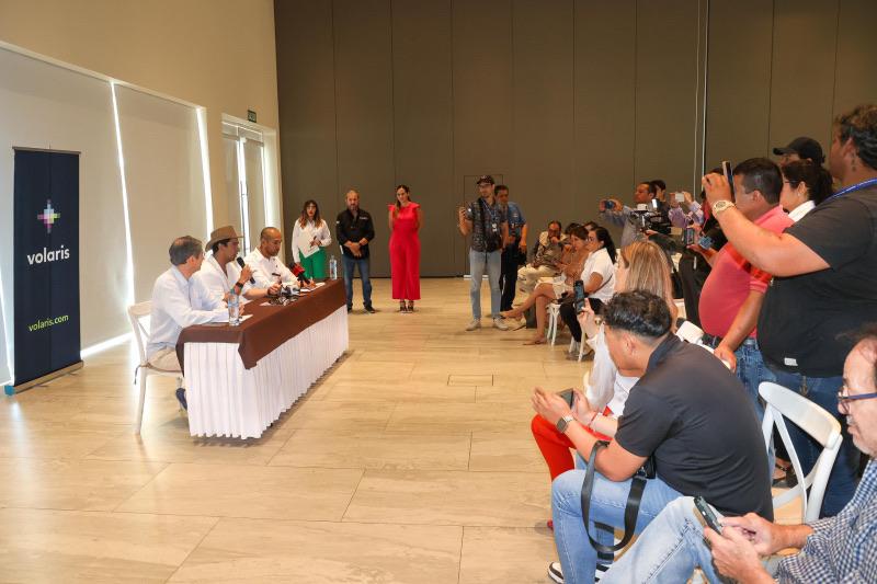 El secretario de Turismo de Sonora, Roberto Gradillas Pineda, acompañado de Dionicio Pérez Jácome, vicepresidente de Sostenibilidad y Desarrollo Corporativo y Omar Carrera Márquez, director Comercial de Volaris, comentó que se está trabajando en una sinergia con esta aerolínea, que se ve reflejada en una gran oportunidad para que los visitantes conozcan la enorme oferta turística con la que cuenta el Estado.