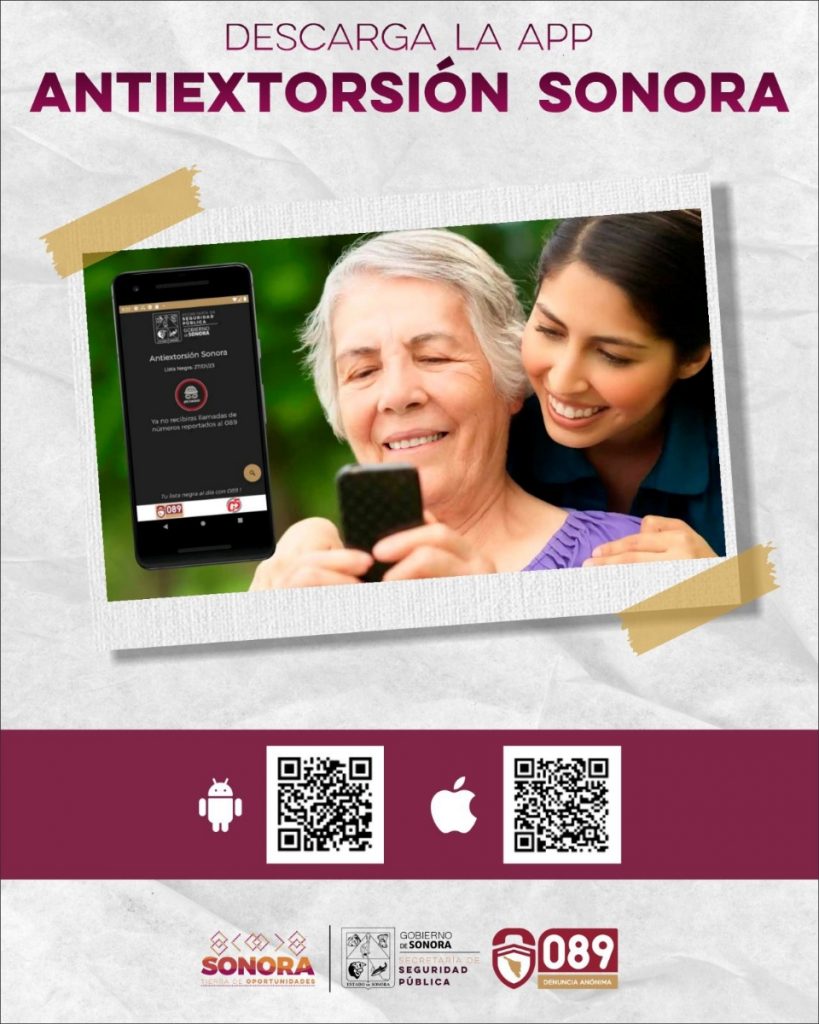 Hermosillo, Sonora.- Para prevenir que adultos mayores sean víctimas de una extorsión telefónica, el Gobierno de Sonora exhorta a descargar en sus celulares la aplicación Antiextorsión Sonora diseñada por la Secretaría de Seguridad Pública (SSP).