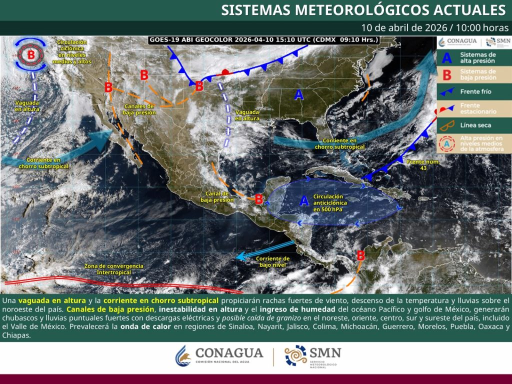 Durante este viernes, se prevé un día con cielo despejado a parcialmente nublado, temperaturas máximas cercanas a los 34 grados centígrados en zonas como la región centro y sur de la Entidad, así como vientos moderados provenientes del oeste. No se esperan precipitaciones y la sensación térmica se mantendrá elevada durante la tarde.