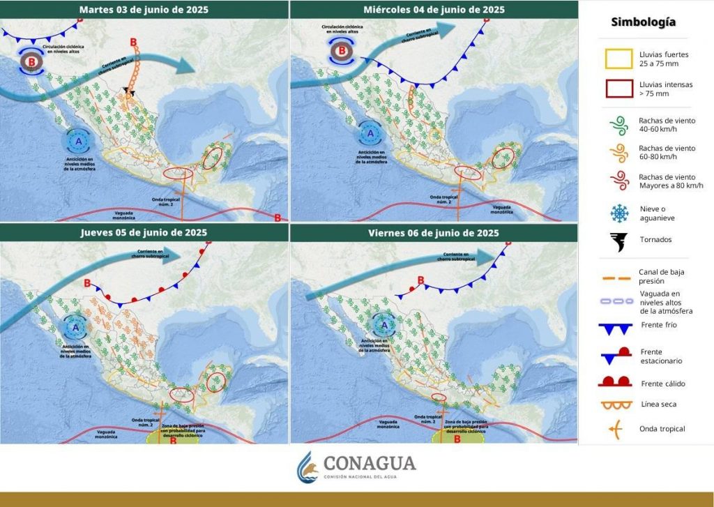 Por su parte, este sistema se mantendrá sobre el noroeste del Estado probabilidad de lluvias dispersas durante el transcurso de la madrugada del miércoles.