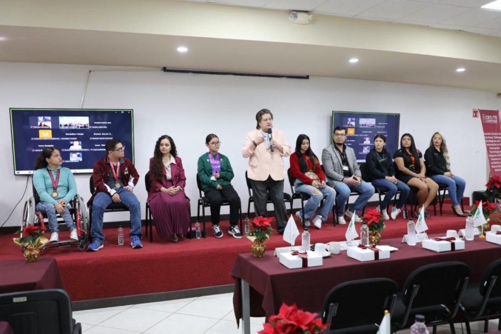 Durante el evento se entregaron los reconocimientos a la Trayectoria Deportiva 2025 a las alumnas Sofía Ibarra Miranda, campeona internacional en tiro deportivo; Rosa Isela Ochoa Rascón, campeona de Paralimpiada Nacional Conade 2025 y a Gabriela Hernández Araujo, medallista de plata en el Torneo Internacional Boxam en España.