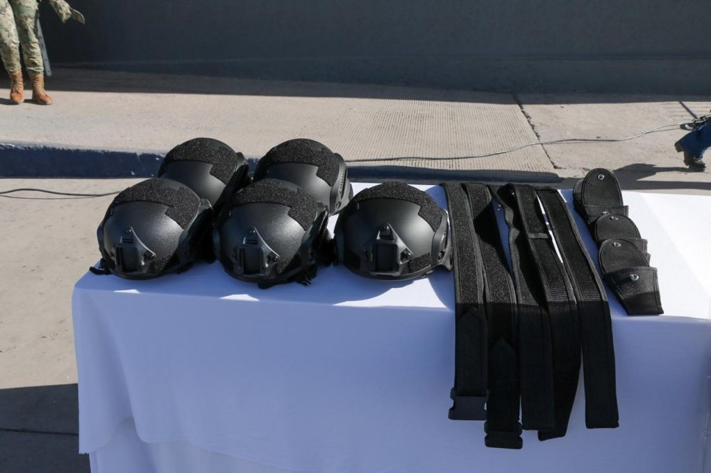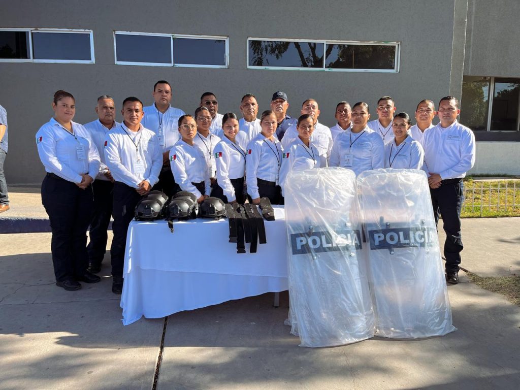 Cd. Obregón, Sonora.- Se llevó a cabo el lunes cívico en la Secretaría de Seguridad Pública Municipal frente al edificio de la corporación policial, evento semanal en el que además de difundir valores patrios se realizó la entrega de equipamiento táctico con fines educativos para las y los cadetes de la Academia de Policía Municipal.