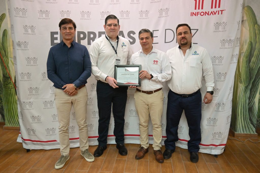Cd. Obregón, Sonora.- El Organismo Operador Municipal de Agua Potable, Alcantarillado y Saneamiento de Cajeme, fue reconocido por segundo año consecutivo como “Empresa de Diez” por parte del Instituto del Fondo Nacional de la Vivienda para los Trabajadores (#INFONAVIT).