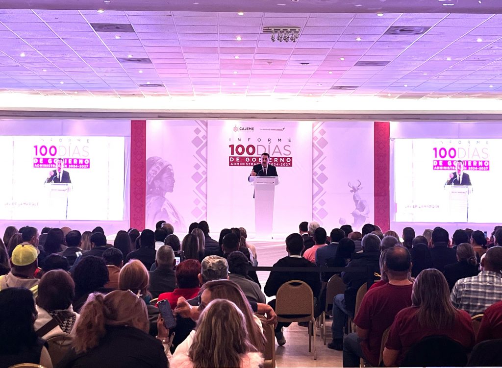 Cd. Obregón, Sonora.- En el marco de los primeros 100 días de gobierno y refrendando los compromisos de la campaña que lo llevaron a ser el primer Presidente Municipal reelecto en Cajeme, el Alcalde Javier Lamarque presentó un informe sobre el estado que guarda la administración pública municipal durante sus primeros tres meses de trabajo, mismos que desplegarán todas las líneas de acción para el cumplimiento del Plan Municipal de Desarrollo del trienio 2024-2027.