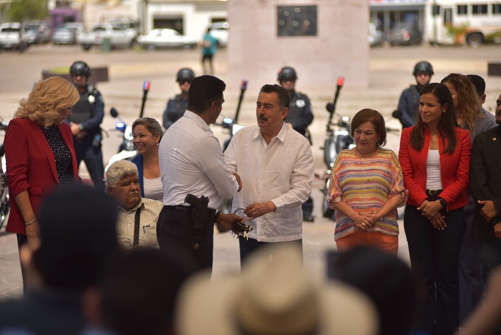 Cd. Obregón, Sonora.- En un esfuerzo continuo por fortalecer la seguridad y mejorar la capacidad operativa de la corporación policiaca, el Ayuntamiento, encabezado por el Presidente Municipal, Javier Lamarque, realizó la entrega de 10 motocicletas tipo patrulla y 20 radios portátiles TPH900, con una inversión cercana a 3 millones de pesos.