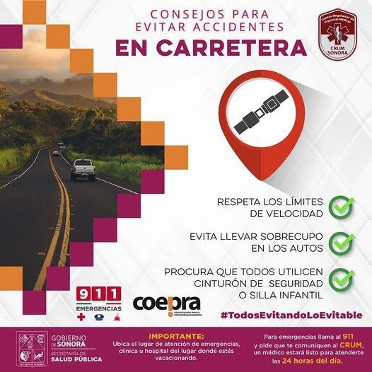 Hermosillo, Sonora.- Durante las fiestas decembrinas y la temporada invernal, la Secretaría de Salud (SSP) del Gobierno de Sonora hace un llamado a la población y a quienes visitan el estado a cuidar su seguridad, ya que en estas fechas aumenta el flujo de personas y los traslados por carretera.