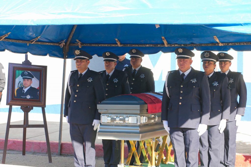Cd. Obregón, Sonora.- En una emotiva ceremonia encabezada por el Presidente Municipal, Javier Lamarque, familiares, amigos, autoridades y compañeros de la corporación rindieron un homenaje póstumo al oficial Jesús Francisco Ramos Acosta, quien falleció en cumplimiento de su deber.