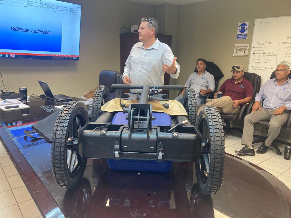 Cd. Obregón, Sonora.- Con el objetivo del aprovechamiento óptimo de la tecnología de punta del Georadar recién adquirido por el organismo de agua de Cajeme, el Ingeniero Adrián Real capacitador en México de la empresa US Radar fabricante del equipo, impartió curso de capacitación sobre el manejo, operación e interpretación de datos, para optimizar los resultados de esta tecnología en favor de la comunidad y el propio organismo.