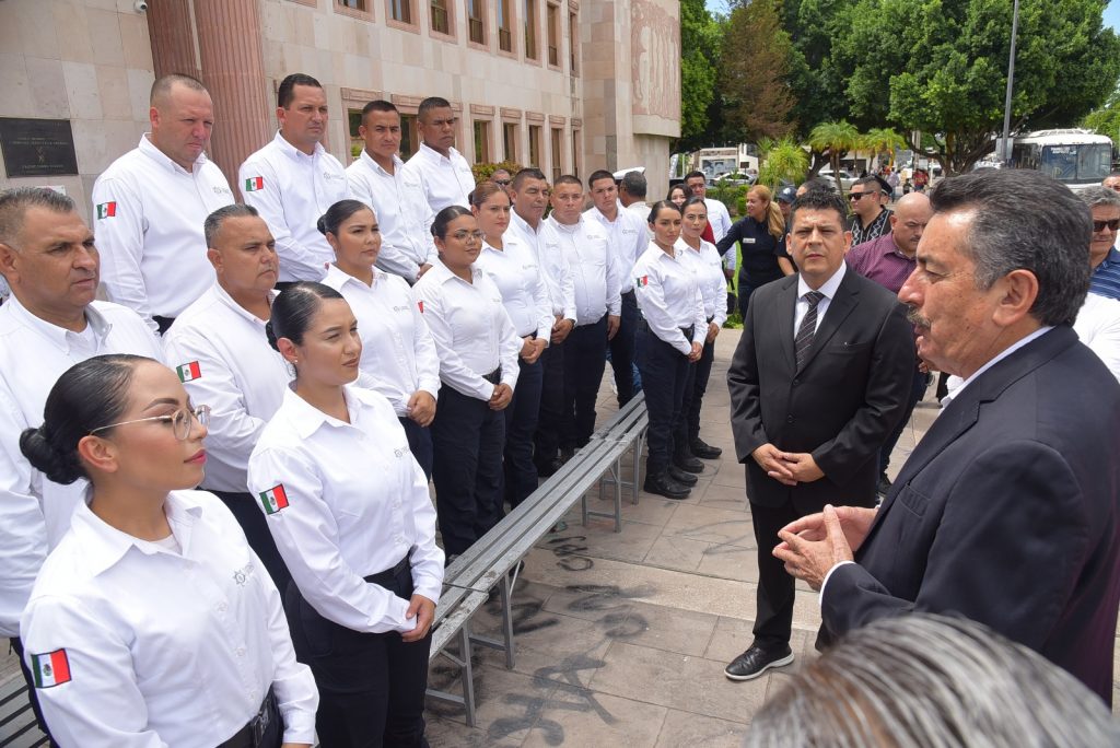 Erick Gabriel Campos González, director operativo de la SSPM en representación de Claudio Cruz Hernández, jefe de la Policía Preventiva y Tránsito Municipal, felicitó a las y los nuevos agentes por su dedicación, esfuerzo y compromiso, a quienes exhortó a ser modelos de integridad, servicio y responsabilidad en su actuar policial.