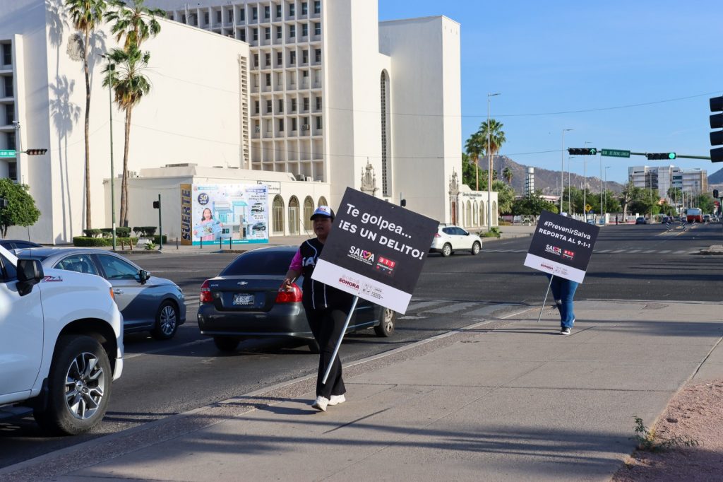 Los equipos del Sistema SALVA junto la División SALVA de Policía Estatal, situados en una de las arterias más importantes y transitadas de Hermosillo, difundieron material gráfico en el que se promueven las herramientas que pueden utilizar para prevenir ser víctimas de violencia.