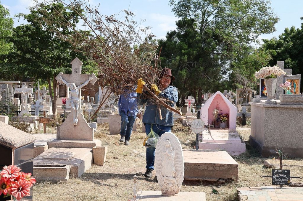 Cd. Obregón, Sonora.- Con el objetivo de que las familias cajemenses puedan rendir homenaje y recordar a sus seres queridos en espacios limpios, seguros y en óptimas condiciones este próximo 1 y 2 de noviembre, el Presidente Municipal, Javier Lamarque, supervisó los trabajos de mantenimiento y rehabilitación en los panteones municipales.