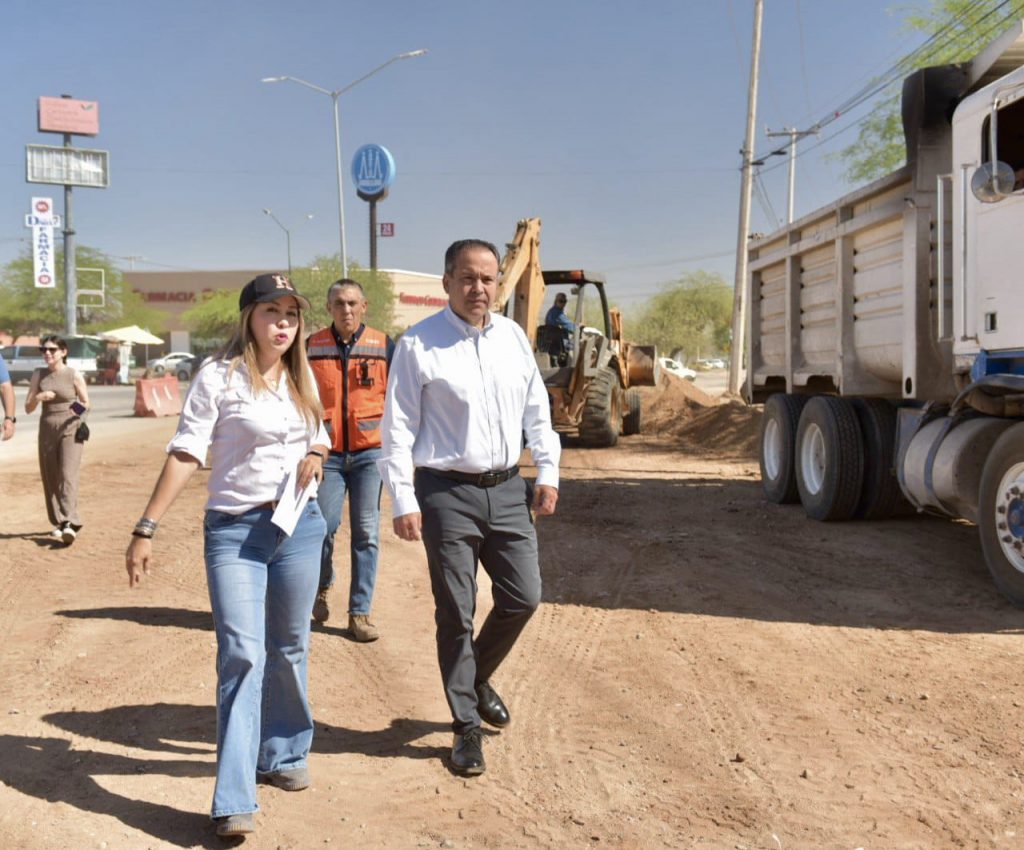 Hermosillo, Sonora.- El Presidente Municipal Antonio Astiazarán Gutiérrez constató los avances en la rehabilitación del bulevar Cimarrón con pavimentación a base de concreto hidráulico.