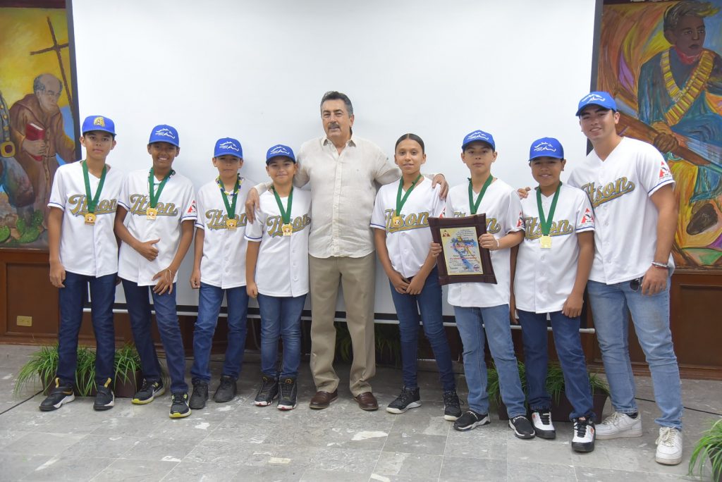 Cd. Obregón, Sonora.- Durante el Diálogo con Cajeme, el Presidente Municipal Javier Lamarque Cano reconoció el talento que existe entre las niñas, niños y jóvenes de Cajeme, felicitando con gran entusiasmo a los integrantes del equipo de béisbol de la academia del ITSON categoría 11 – 12 liviana, quienes recientemente resultaron campeones en un torneo nacional realizado en el Estado de Chihuahua.